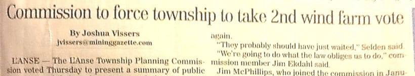 JOSHUA VISSERS, Staff Writer, The Mining Gazette L'Anse Township Planning Commission following the process and fulfilling their legal responsibilities despite irregularities by the township board.